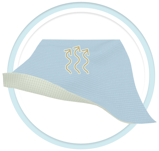 DRYSOLER utilizes the unique tension of TSP and works together with the advanced weaving technology to form a thick and loose isolation layer, which improves the water retention of the fabric and also keeps sweat from coming back to the body.